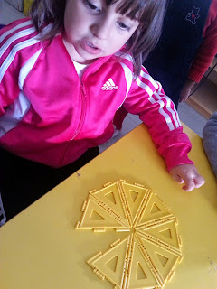 Porque falta um mês para o Natal, começámos hoje as experiências natalícias, fizemos a primeira estrela (espátulas, massa e ráfia).